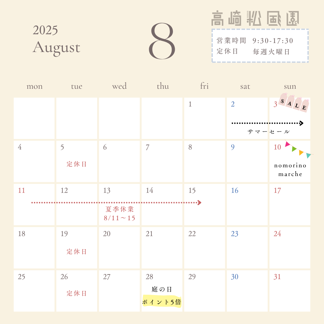 8月28日(土) 「庭の日」ポイント5倍