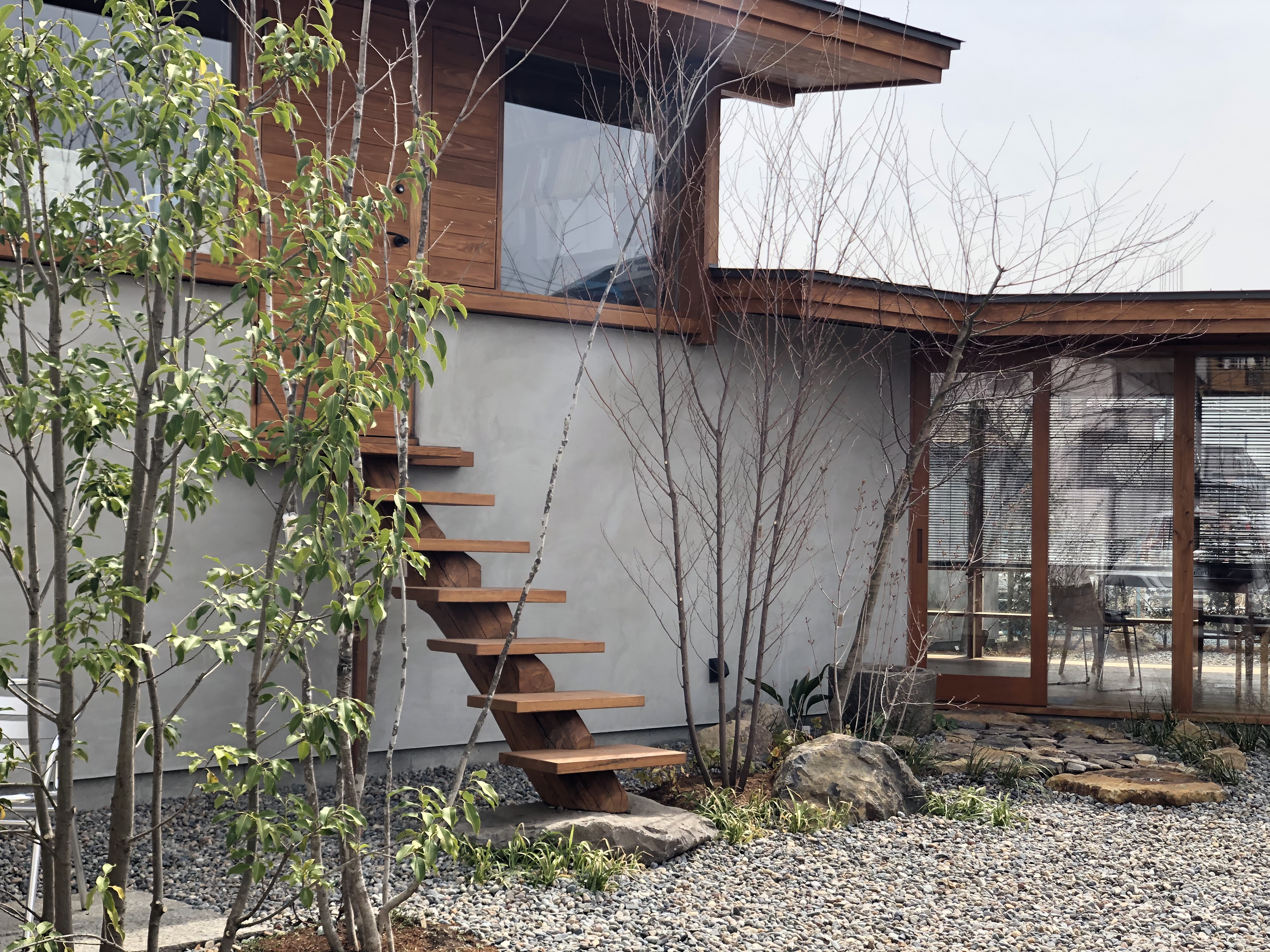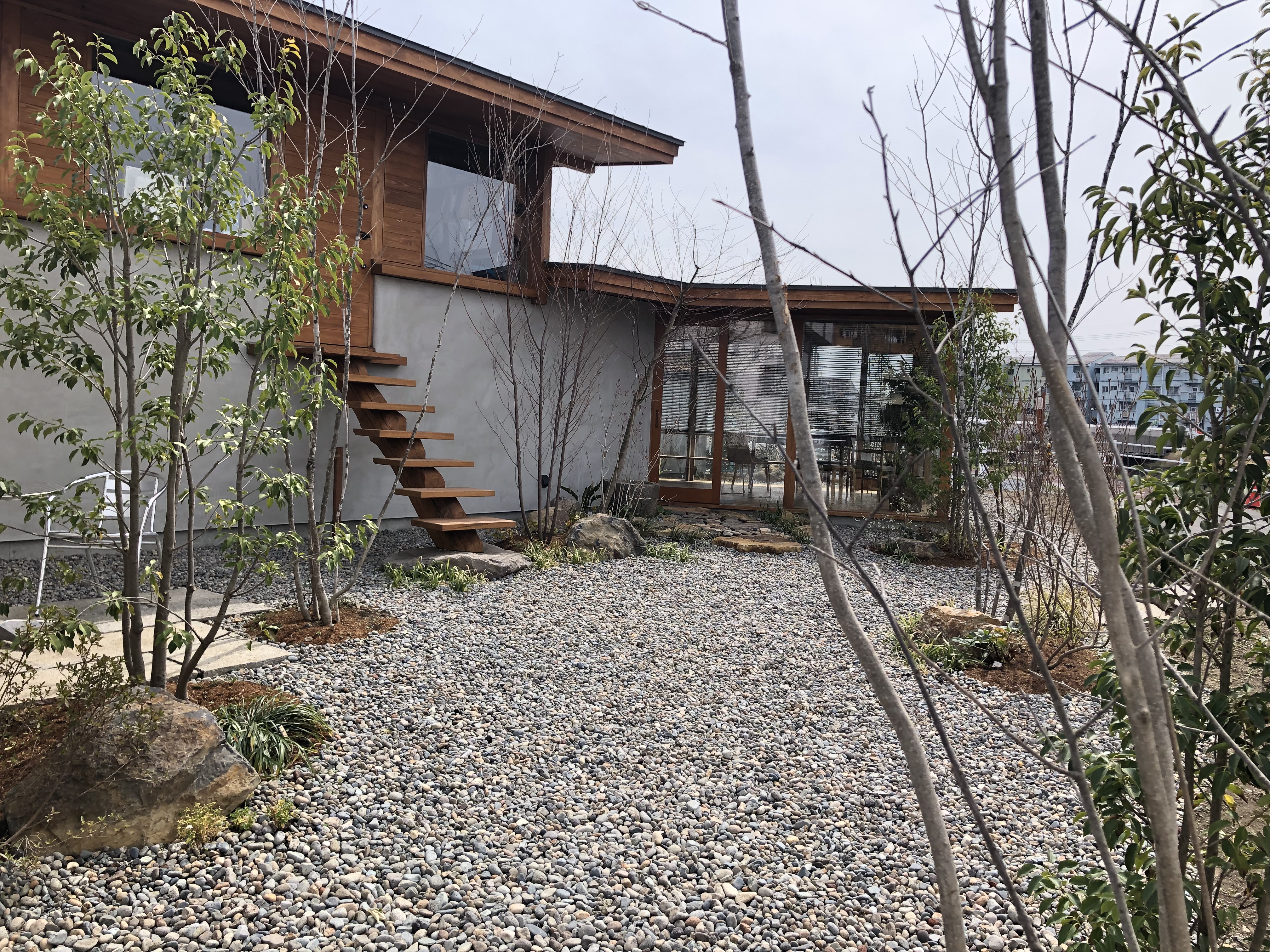 高崎市の河川沿いに佇む、建築設計事務所の庭。