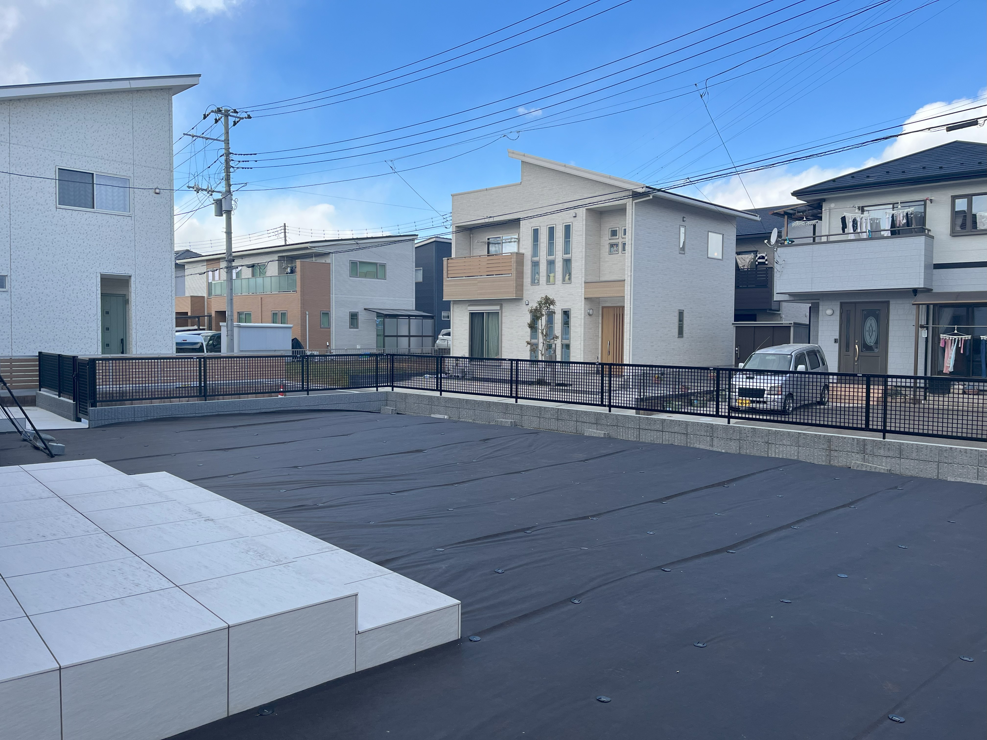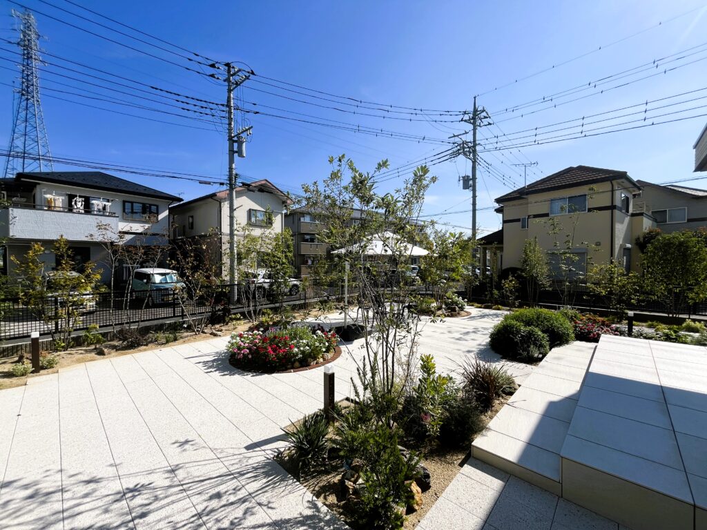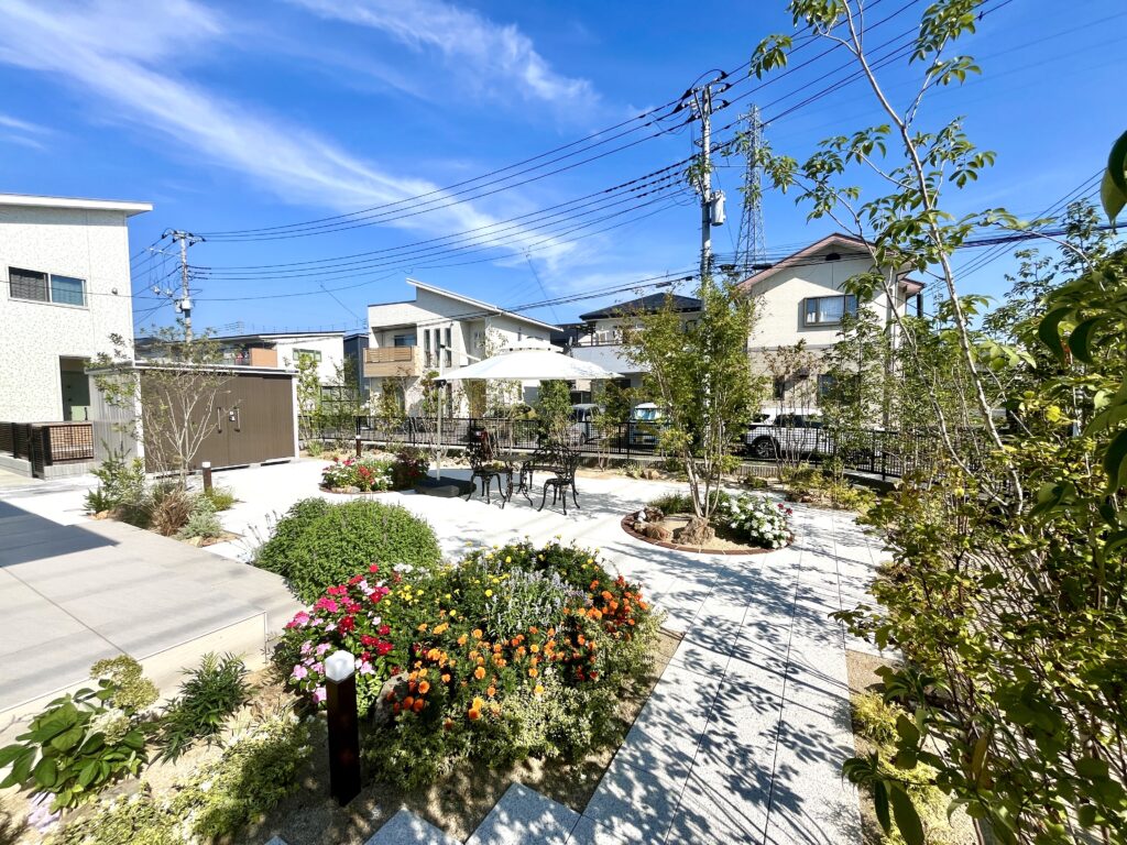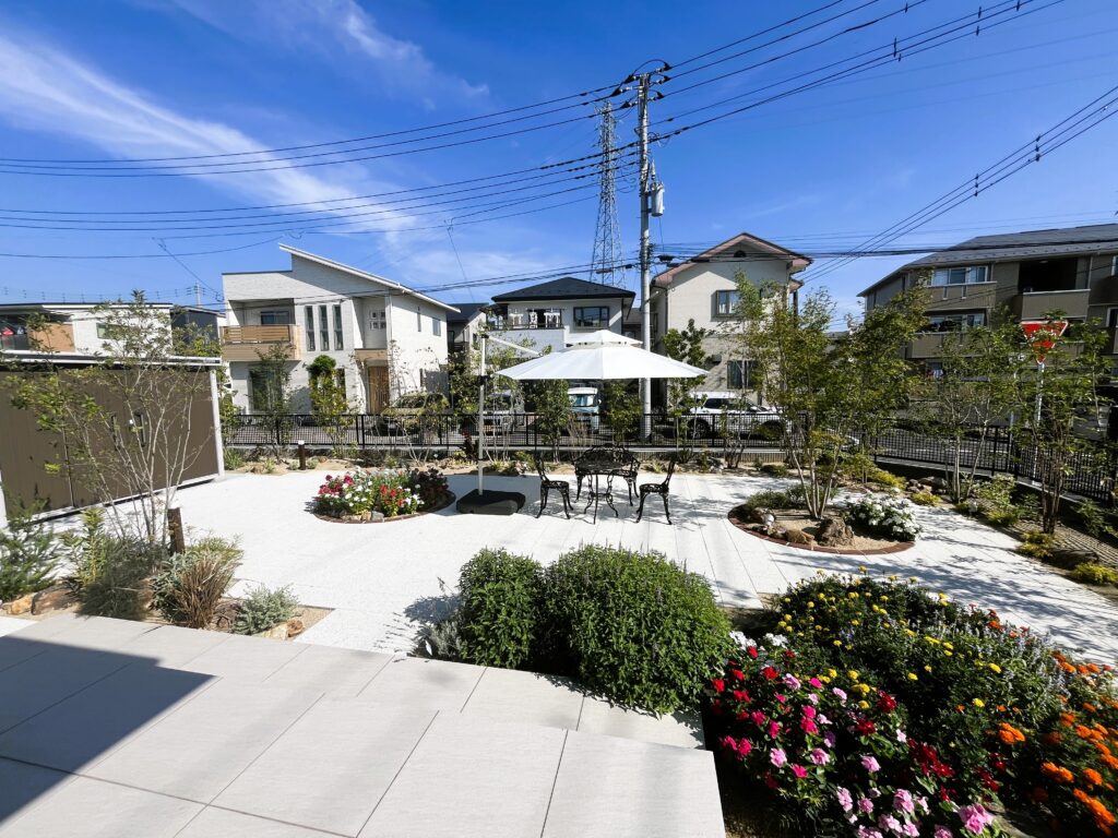 タイルデッキから緩やかにつながるインターロッキング舗装のテラスは、屋内と屋外を自然に接続し、暮らしの延長としての庭空間を演出。また、歩行性と排水性を兼ね備えた舗装材を選定したことで、快適性とメンテナンス性の両立も図れています。 敷地境界には高低差と色彩を考慮した植栽を配置。高木と低木、草花を組み合わせることで、季節ごとの変化を楽しめると同時に、視線のコントロールと空間の柔らかな仕切りを実現しています。プライベートな安心感を保ちつつ、街並みとのつながりを感じられる“セミパブリック”なお庭に仕上がりました。
