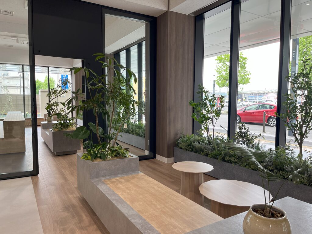上毛新聞社様の本社に隣接する「JOMOスクエア」の1Fの屋内緑化を施工させていただきました。