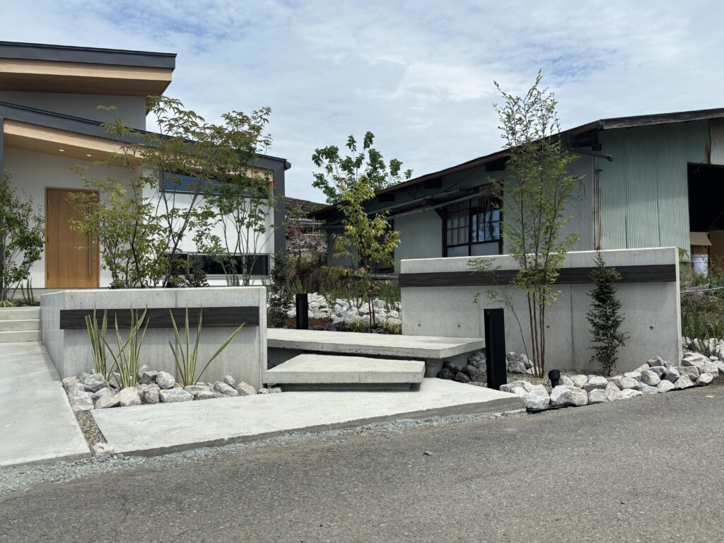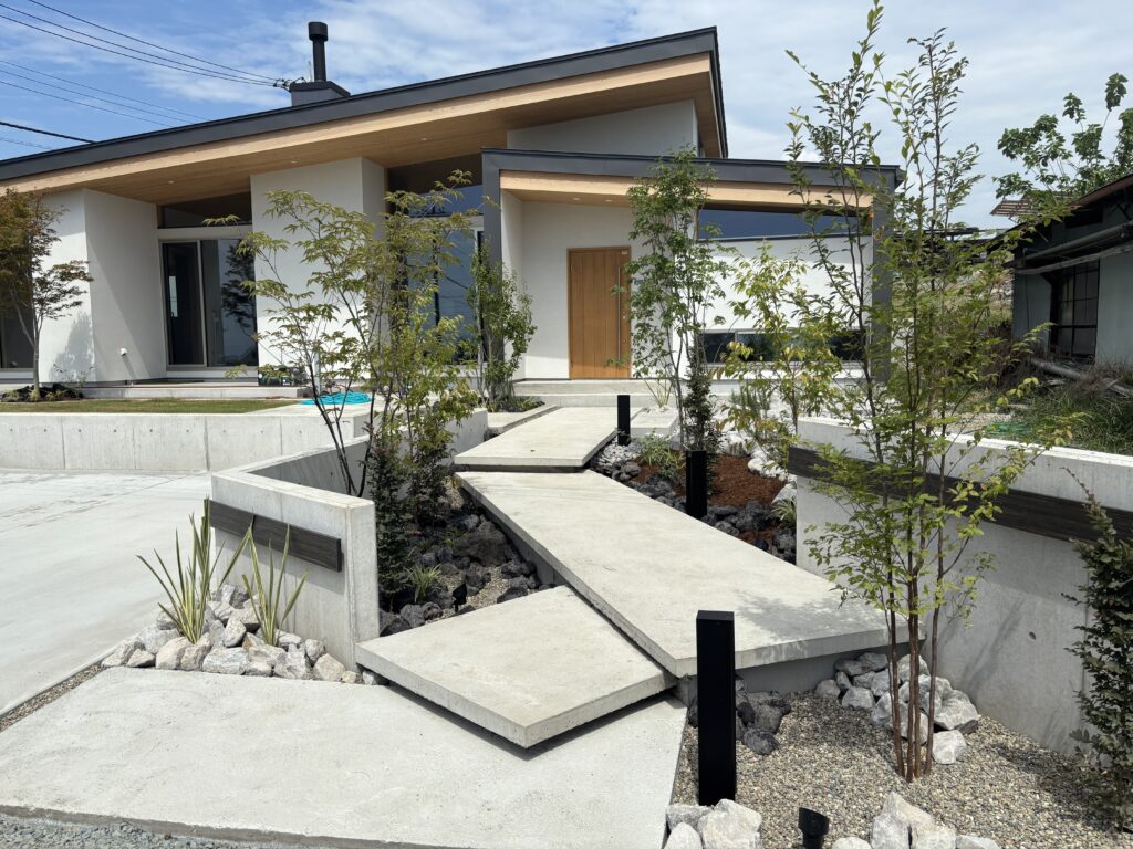 【戸建・新築】木のぬくもりが息づく大らかな平屋に似合うエクステリアとフロートステップ
